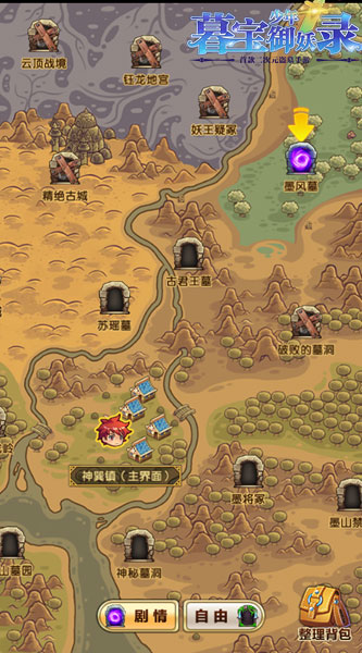 《暮宝少年御妖录》一共有20个剧情关卡,每个关卡分若干层墓洞和一个主墓,墓洞结构、怪物和掉落都是随机生成,极需考验玩家的生存技巧。除了游戏主线剧情的固定迷宫探索外,玩家还能够在迷宫探索过程中找到许多地图,每一张地图所生成的迷宫也是随机的,甚至于迷宫的楼层都是完全未知的。随机的场景、非线性场景流程与系统复杂性的结合,构成了更加真实的地下城盗墓,让每一次的冒险都成为一份独一无二的体验。想一想,在略带惊悚的地宫世界里踟蹰前行,这样的生存与挑战是不是还有点小刺激与小激动呢?